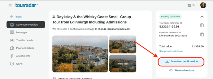 You can review the tour operator’s cancellation terms on your Booking Conversation Page.